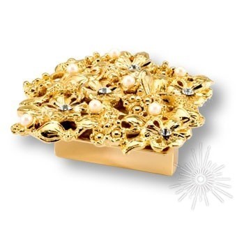 Ручка кнопка"Bouquet" 01.32.MO19, материал Замак, отделка Золото Кристаллы Swarovski, 32*59*56 мм