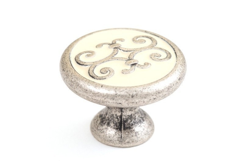 Ручка кнопка 24134Z03000.L25, материал Замак, отделка Серебро Эмаль, 30x22 мм